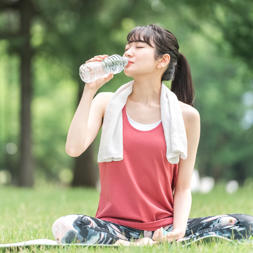 6. Hydrate often. The summer heat makes you more susceptible to dehydration. Start off your day by drinking two glasses of water and keep drinking at each meal, as well as before and after your workout, to stay hydrated. Carry a water bottle with you as a reminder to stay hydrated.